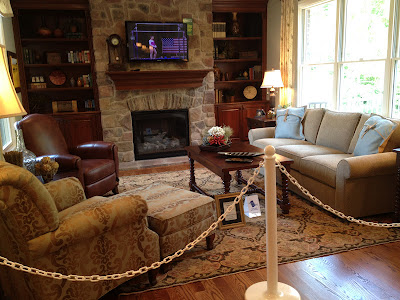 I saw this furniture set up last month at a home show and I loved it. I think it would be a perfect layout for our family room. Now I'm on the search for a club chair, upholstered chair and small round table. I think they will be perfect for the recliner/sofa table area. I'm going to keep checking HG for the perfect chairs.